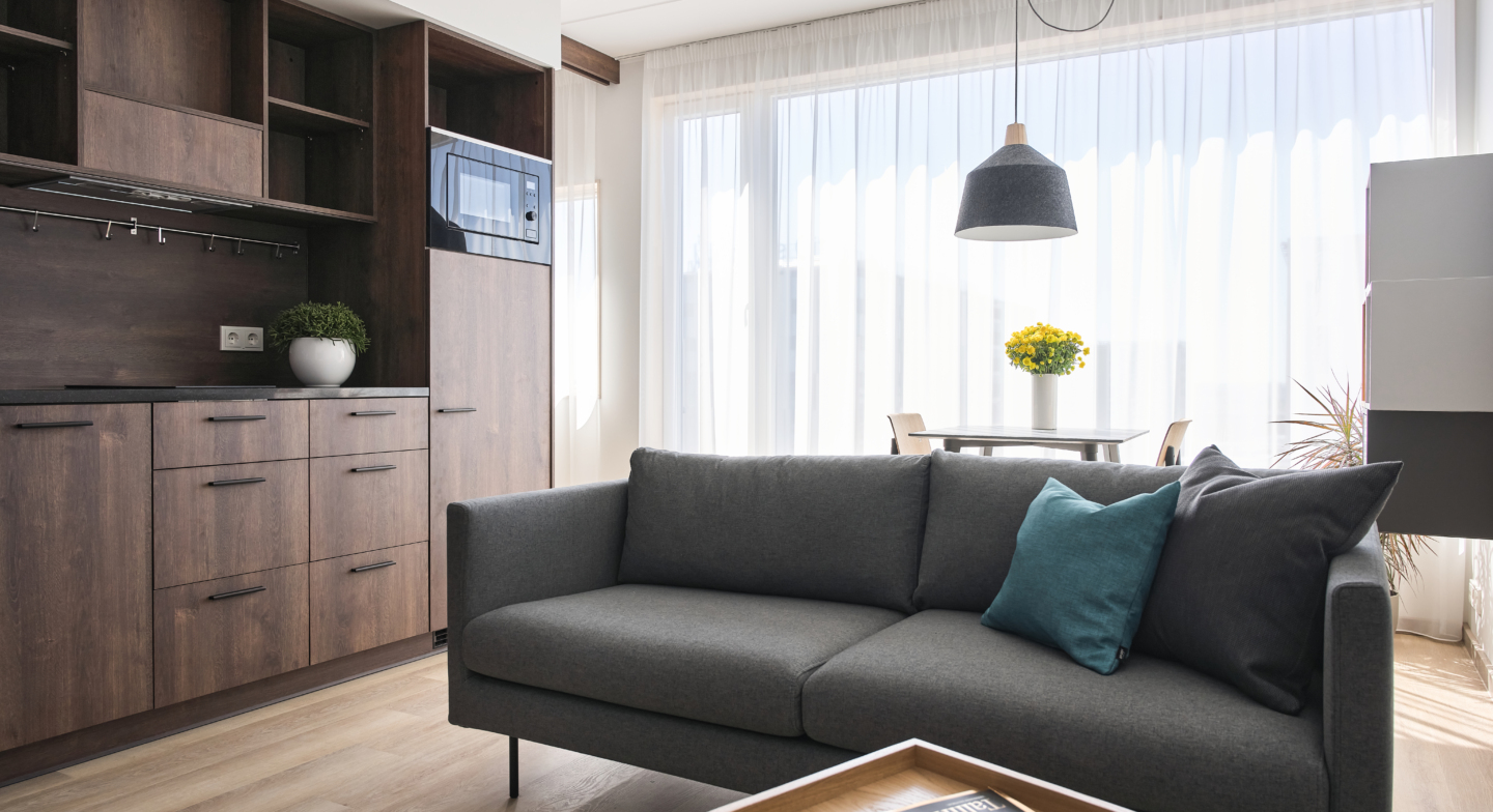 Korterid selles kategoorias asuvad 8.–11. korrusel. Naudi paindlikkust, rentides voodipesu ja lauanõusid otse teenusepakkujalt, muutes elamise veelgi mugavamaks. Korteris on internetivalmidus – lepi teenuse tingimustes kokku TELIA-ga. Lisamugavusena on võimalik auto parkidamajutusasutuse vahetus läheduses parkimismajas lisatasu eest. Puuduvad varjatud kulud ning hoolduskorraldus on lihtne, mistõttu on see ideaalne kodu neile, kes otsivad mugavust, paindlikkust ja stressivaba elukogemust.